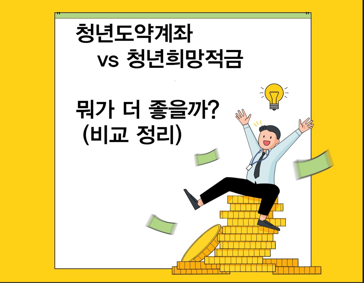 이 글에서 청년도약계좌와 청년희망적금의 차이점, 장단점을 비교해드립니다.