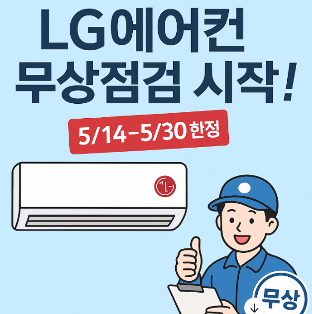 2025년 기준, LG전자는 5월 14일부터 5월 30일까지 여름 대비 에어컨 사전점검 서비스를 무상 제공합니다.