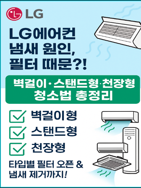 LG에어컨 필터 청소법 총정리|벽걸이·스탠드·천장형까지 냄새 제거 OK!