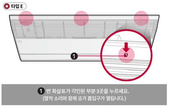 타입 E 화살표 표시 3곳을 눌러 흡입구 전체 열기