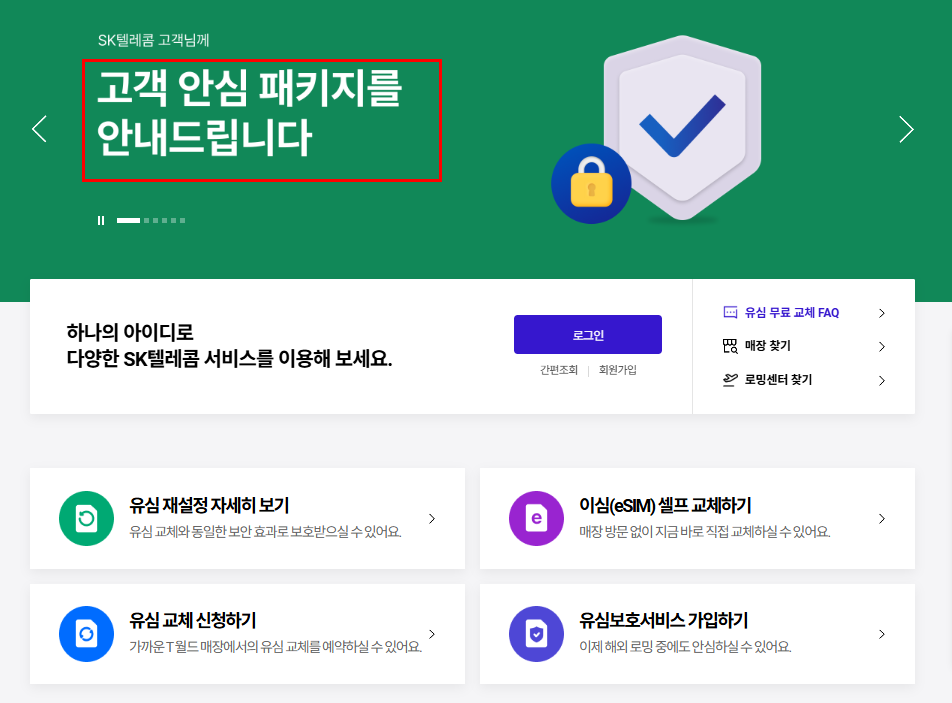 2025년 5월부터 SK텔레콤은 **‘고객 안심 패키지’**를 통해 유심 도용, 개인정보 탈취 등 사이버 범죄로부터 고객을 보호하는 보안 서비스를 통합 제공하고 있습니다.